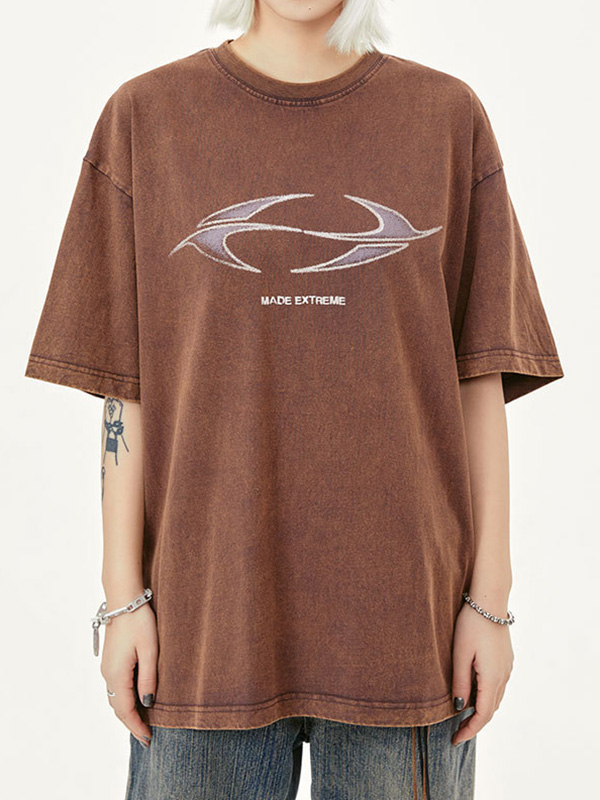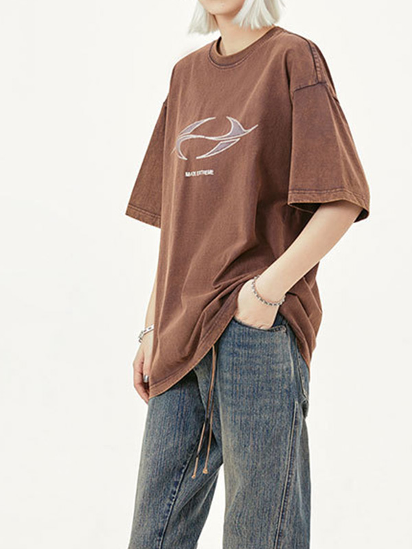 V Neck Star Digital Print Oversized Long Sleeve Tee