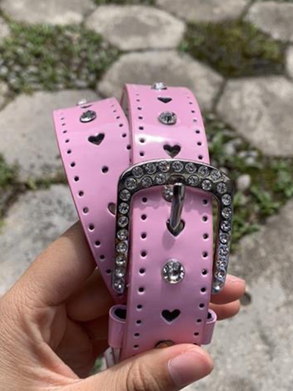Y2K Heart Cutout Shiny Rhinestone Buckle Belt