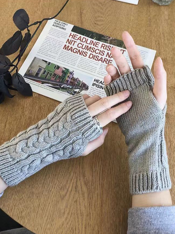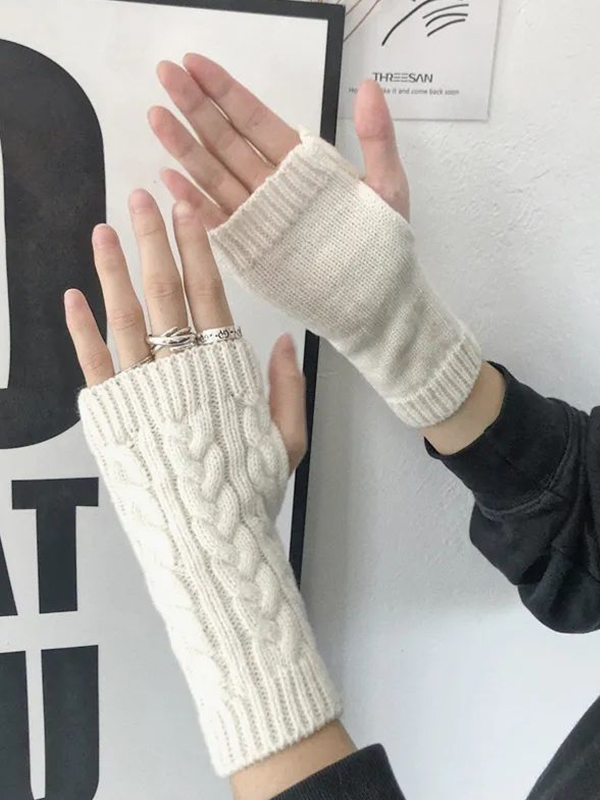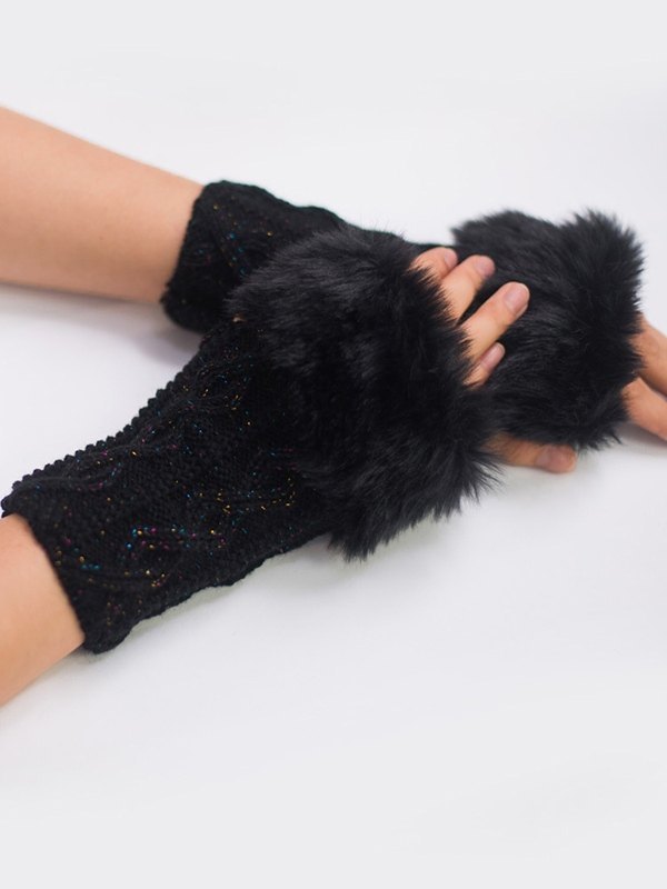 Faux Fur Trim Cable Knit Fingerless Gloves
