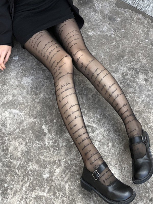 Allover Letter Printed Sheer Tights