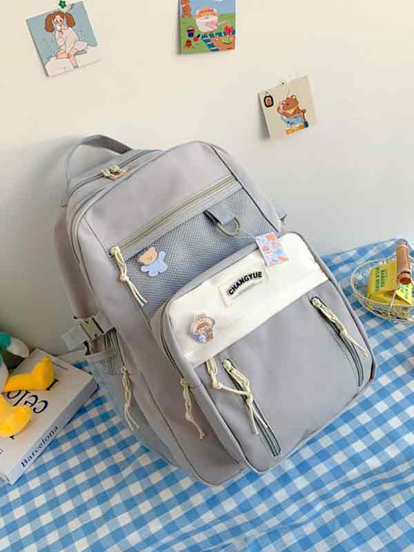 Color-Block Mesh Pocket Casual Backpack