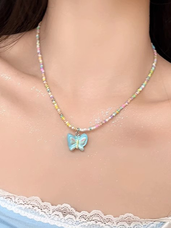 1pc Colorful Beaded Butterfly Necklace