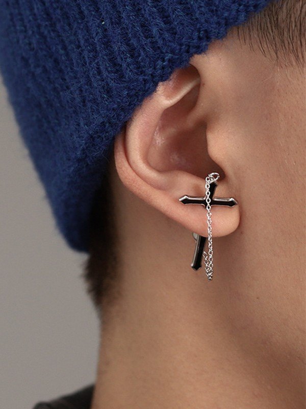 Men’s Punk Chain Embellished Cross Earrings