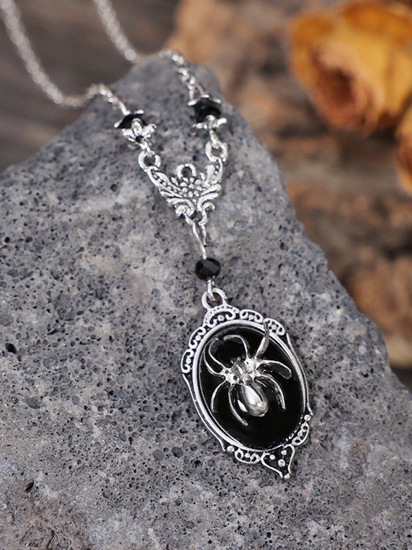 Black Spider Stone Pendant Necklace