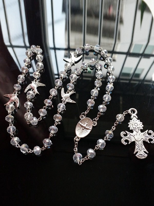 Pigeon Cross Pendant Long Beads Necklace