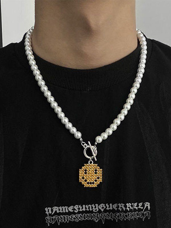 Men’s Smile Pendant Faux Pearl Toggle Necklace