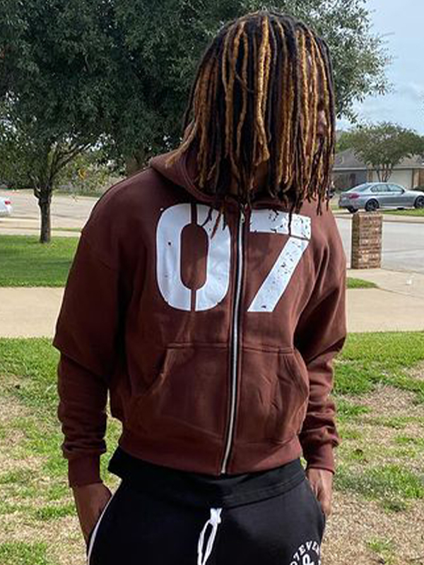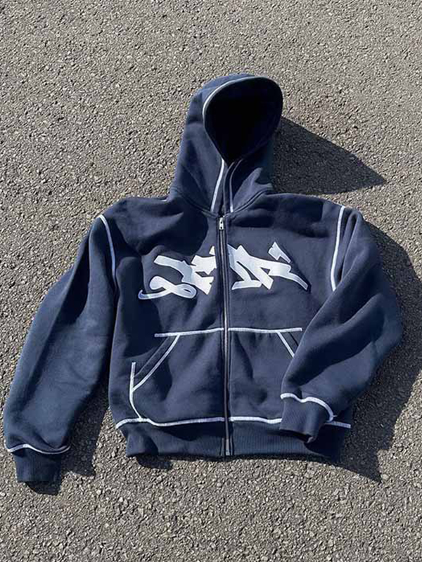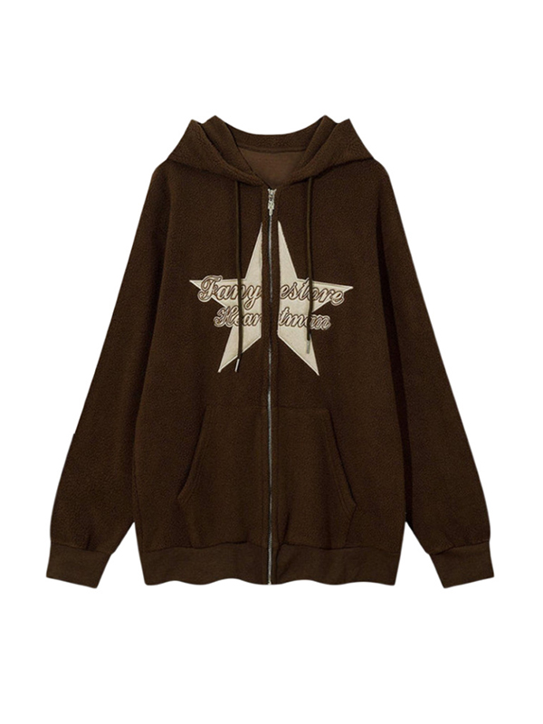 Polar Fleece Star Embroidered Zip Up Oversized Hoodie
