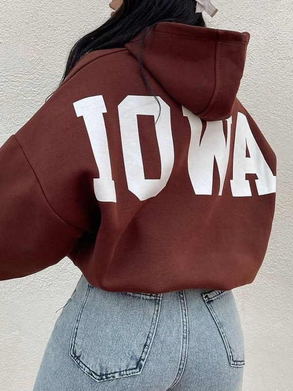 Letter Print Short Oversized Hoodie