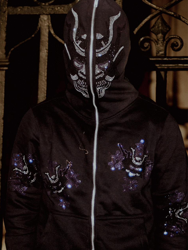 Men’s Rhinestone Skull Half Zip Hoodie
