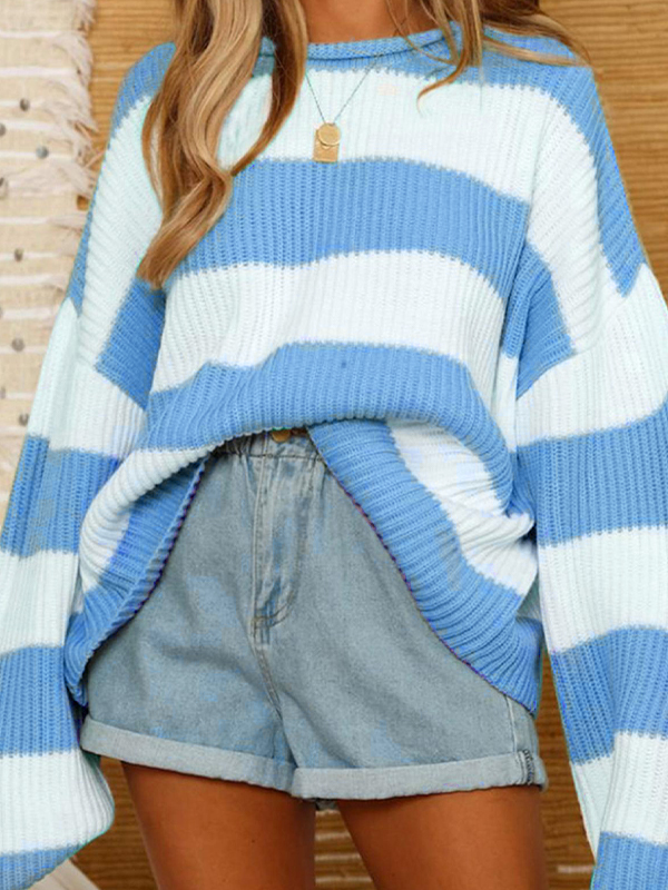 Casual Rib Stripe Baggy Knit Sweater