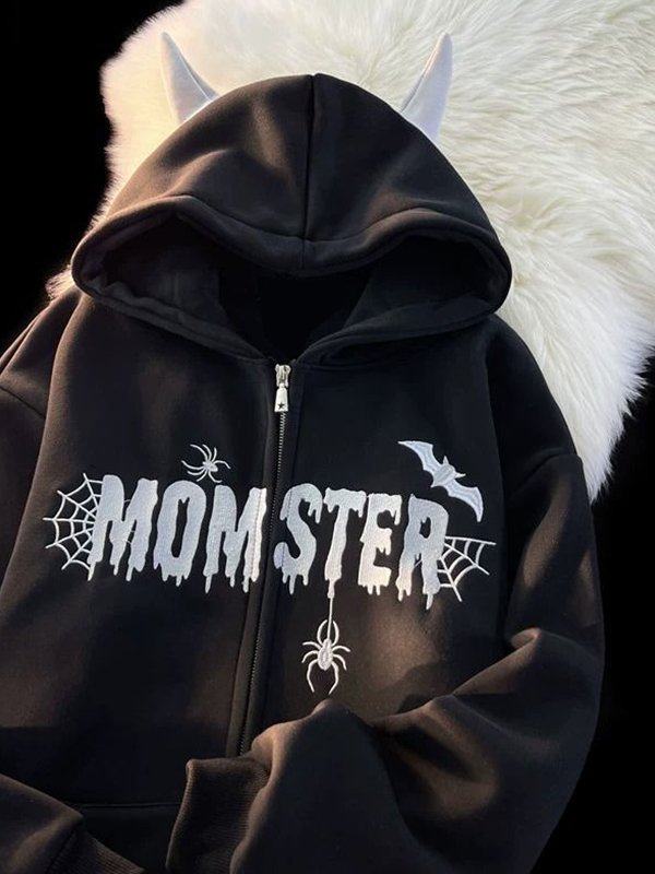 Street Spider Embroidered Devil Styling Oversized Hoodie