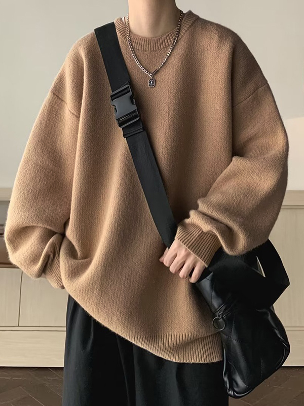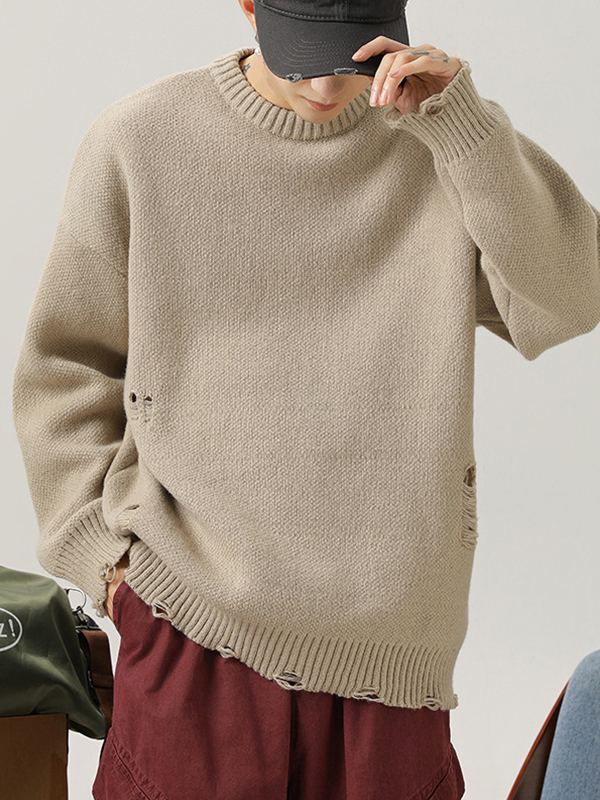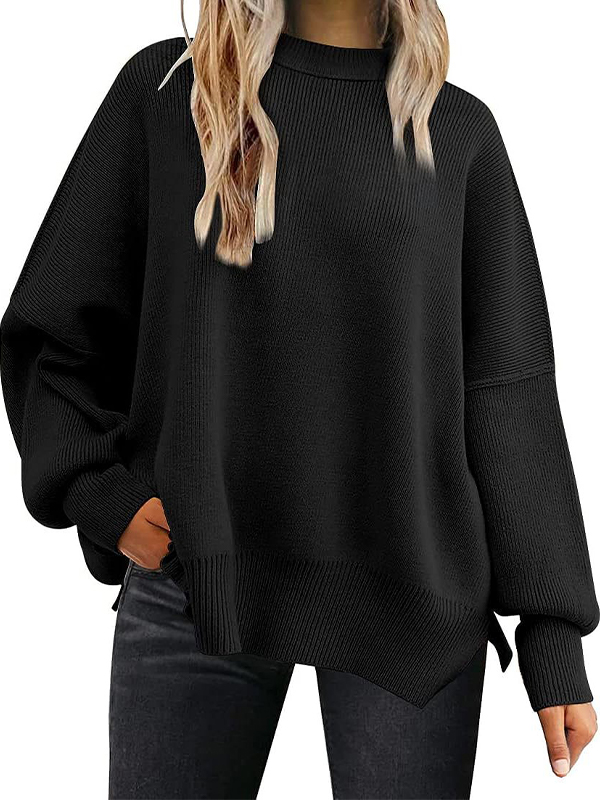 Solid Crew Neck Cape Sleeve Slit Sweater