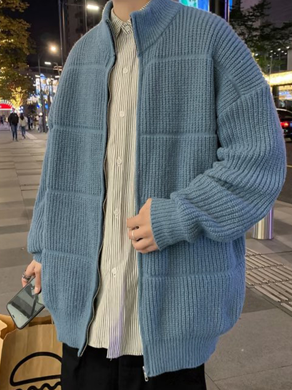 Men’s Solid Color Ribbed Knit Cardigan Sweater