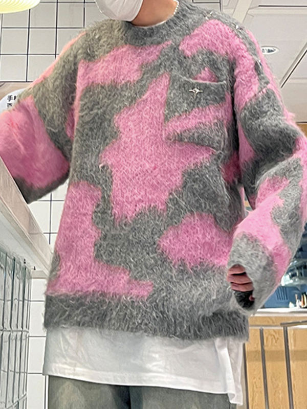 Men’s Irregular Color Block Splice Jacquard Sweater