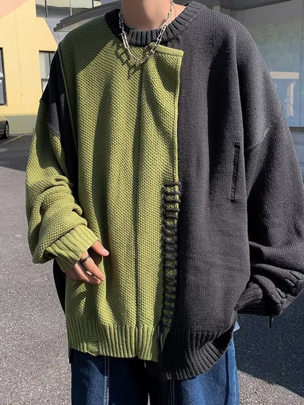 Men’s Vintage Splice Contrast Color Sweater