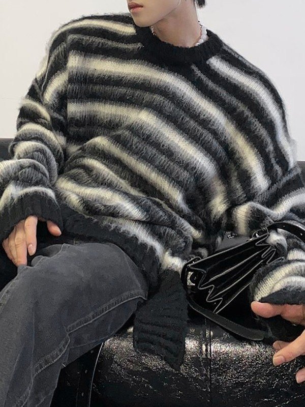 Men’ Fuzzy Stripe Print Loose Sweater