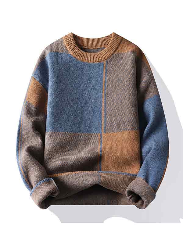 Men’s Contrast Color Checkered Sweater