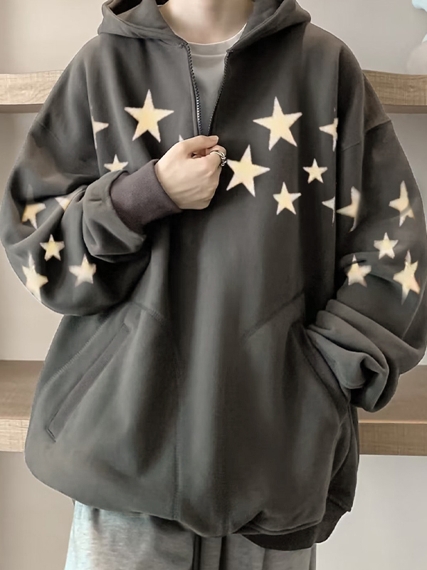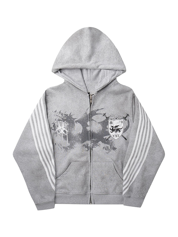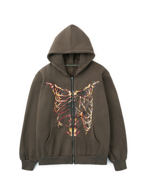 Men’s Street Graphic Print Full Zip Oversized Hoodie