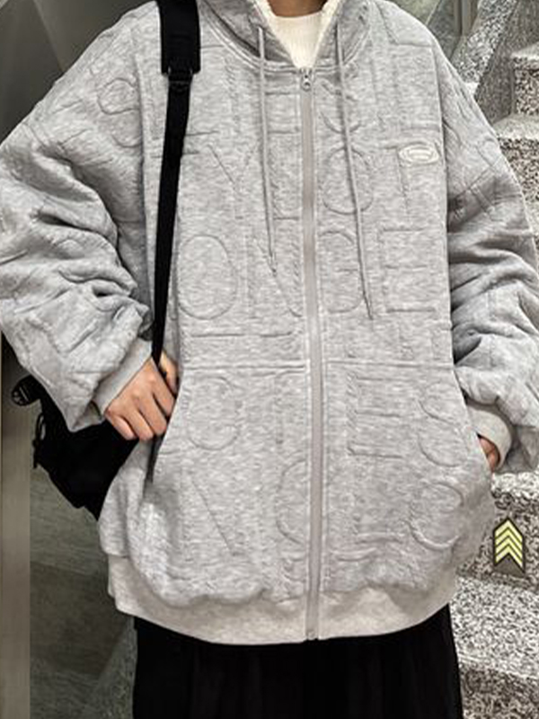 Men’s Solid Print Fleece Lined Zip Up Oversized Hoodie