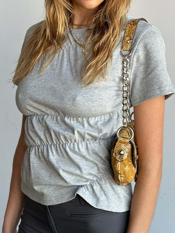 Solid Mock Neck Shirred Slim Long Sleeve Knit