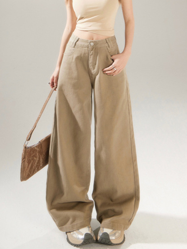 American Trendy Semi-Elastic Waist Loose Jeans