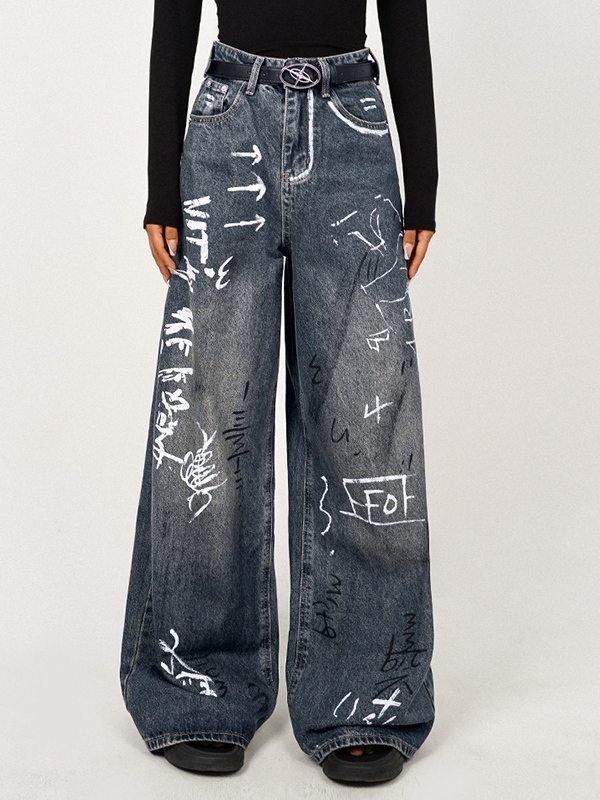 Design Lightning Crack Wash Loose Jeans