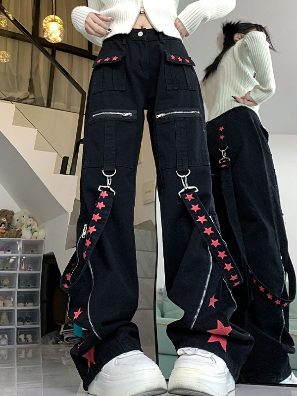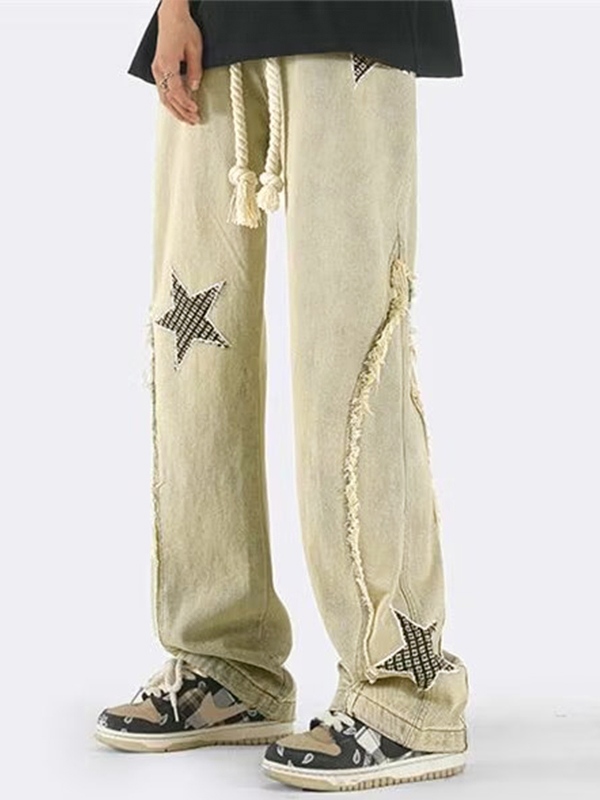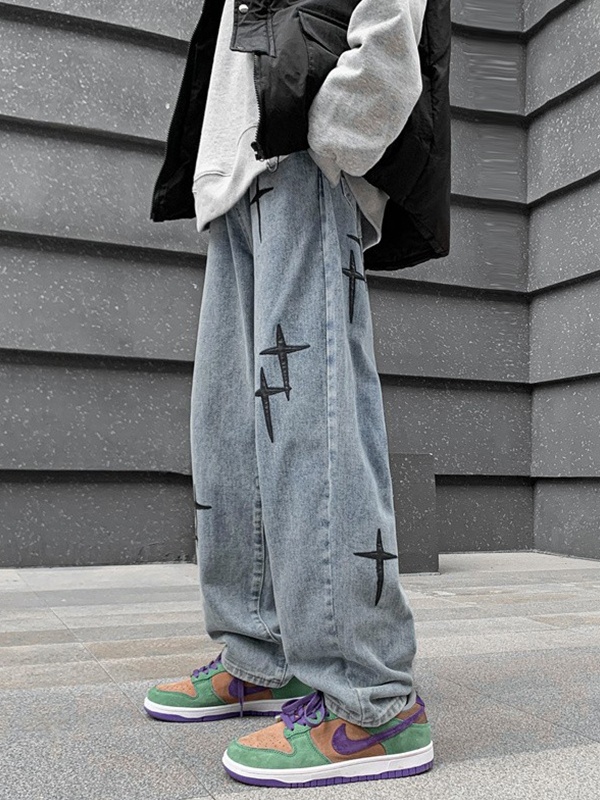 Men’s Star Embroidery Patchwork Loose Jean