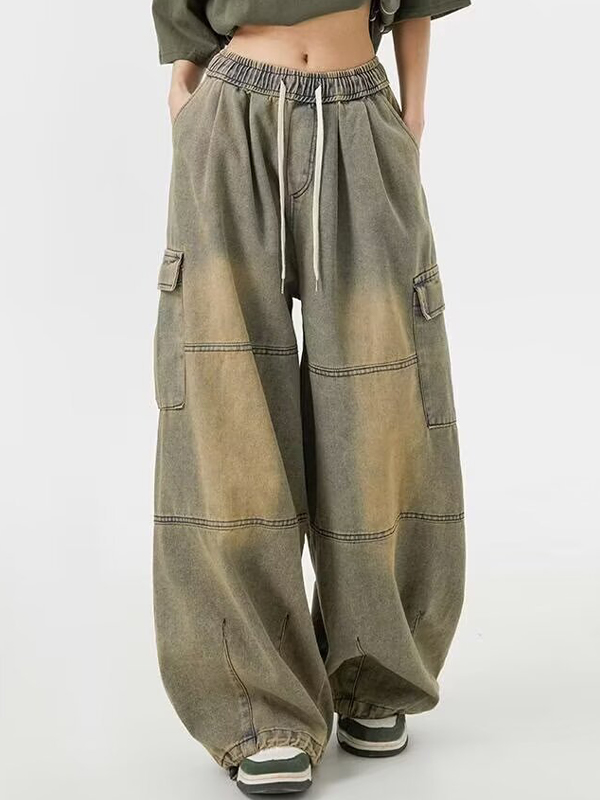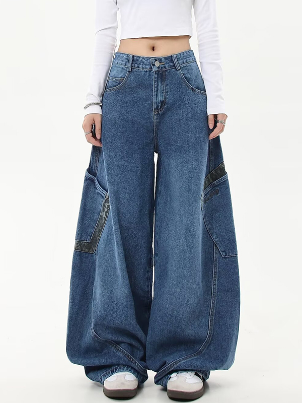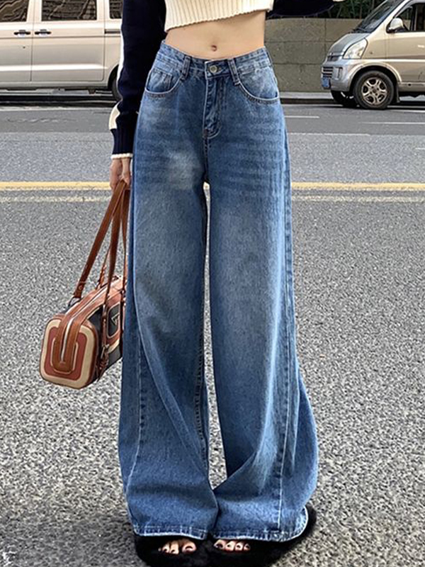 Japanese Retro Loose Blue Wide Legs Loose Jeans