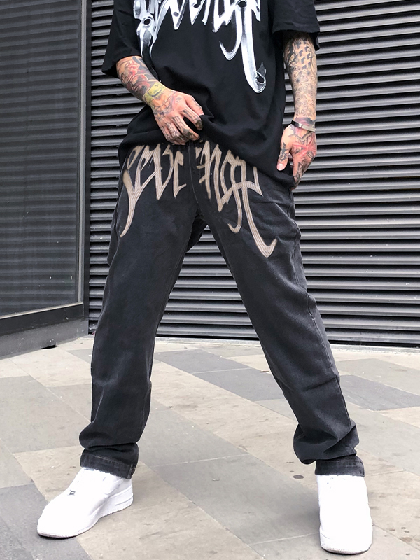 American Retro Leopard Print Stitching Boyfriend Jeans
