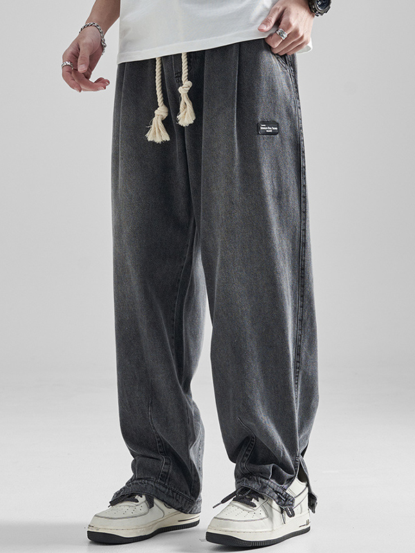 Men’s Hip Pop Fleece Solid Color Bound Feet Sweatpants