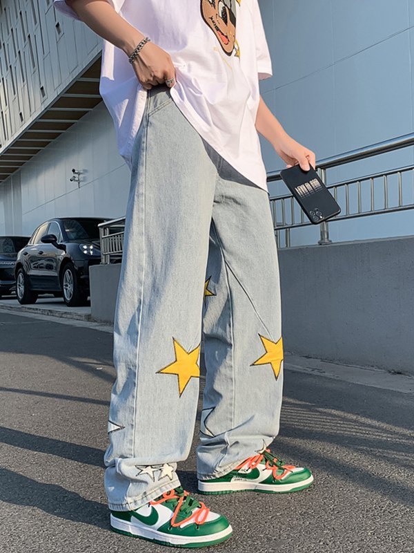 Men’s Patch Star Graphic Loose Jeans