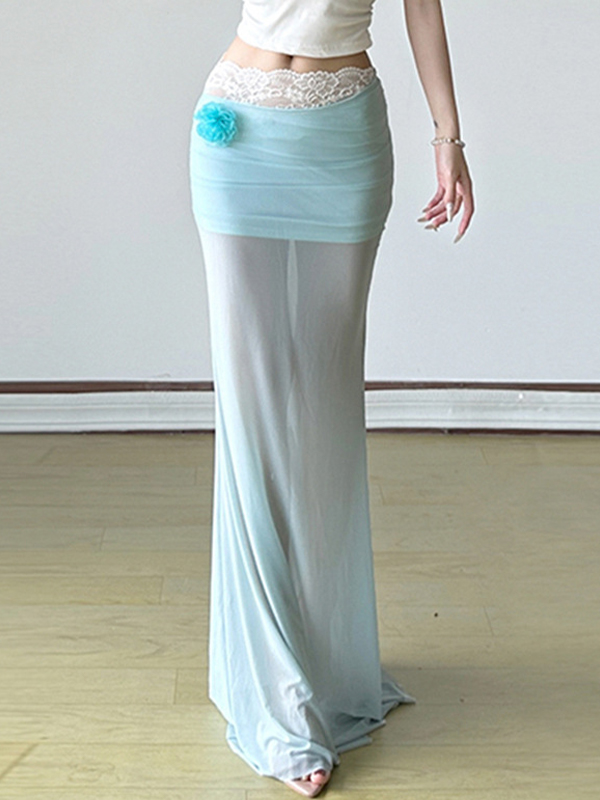 Resort Style Three-Dimensional Flowers Maxi Skirt