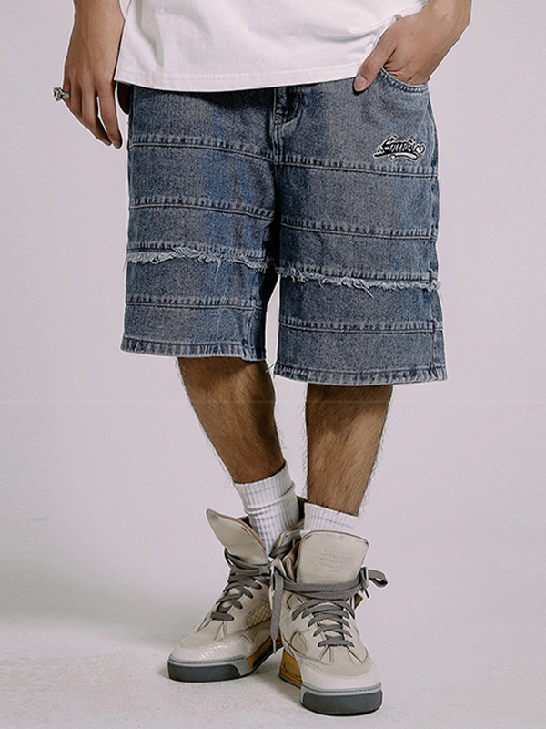 Men’s Letter Embroidery Casual Denim Shorts