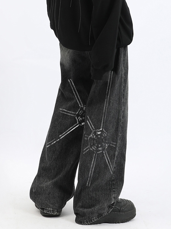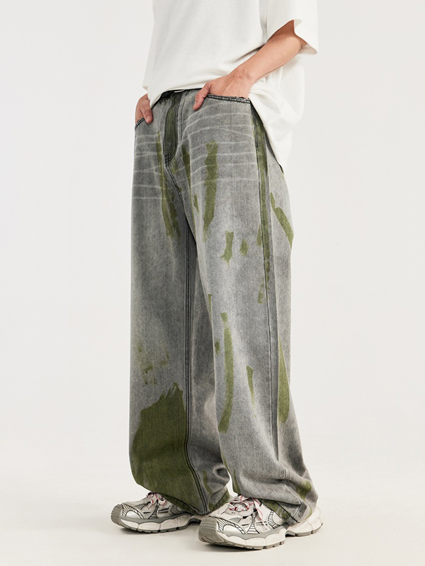 Contrast Color Hand Painted Wide Legs Loose Jeans