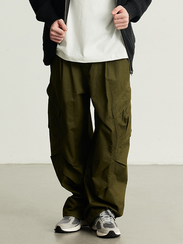 Men’s Solid Multi Pocket Ruched Cargo Pants