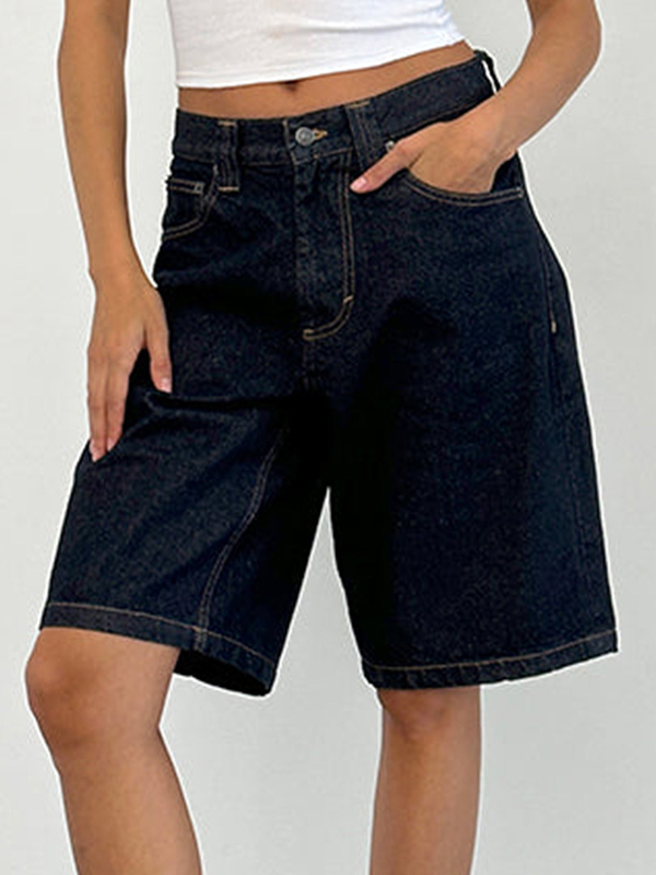High Waist Straight Leg Denim Shorts