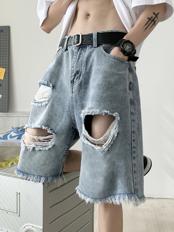 Men’s Vintage Distressed Ripped Denim Shorts