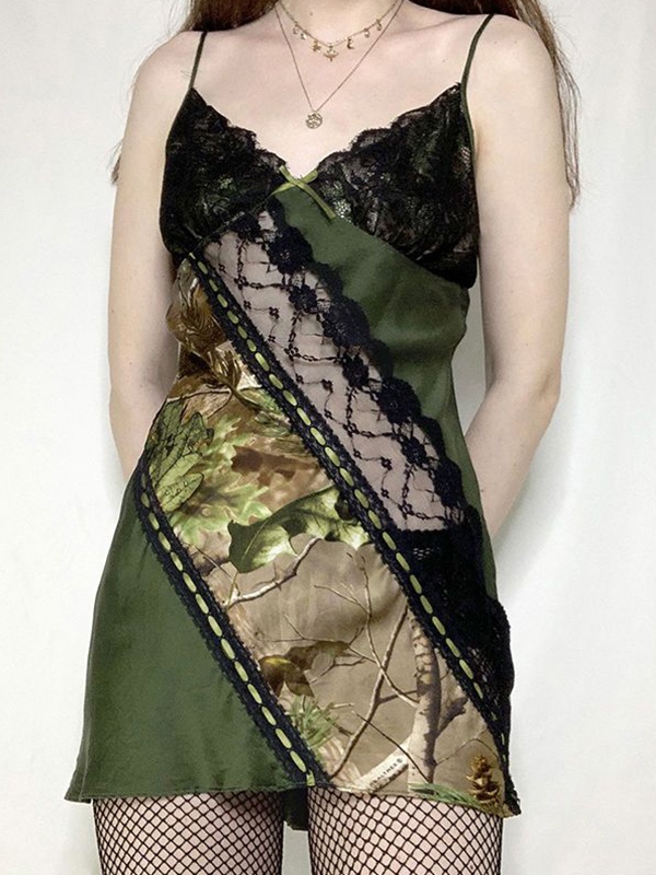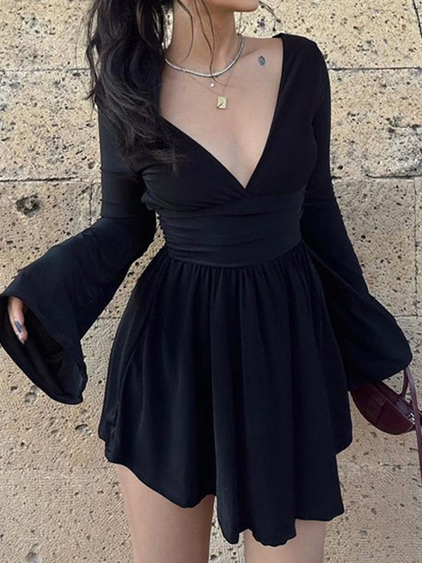 V Neck Halter Ruffled Trim Irregular Hem Mini Dress
