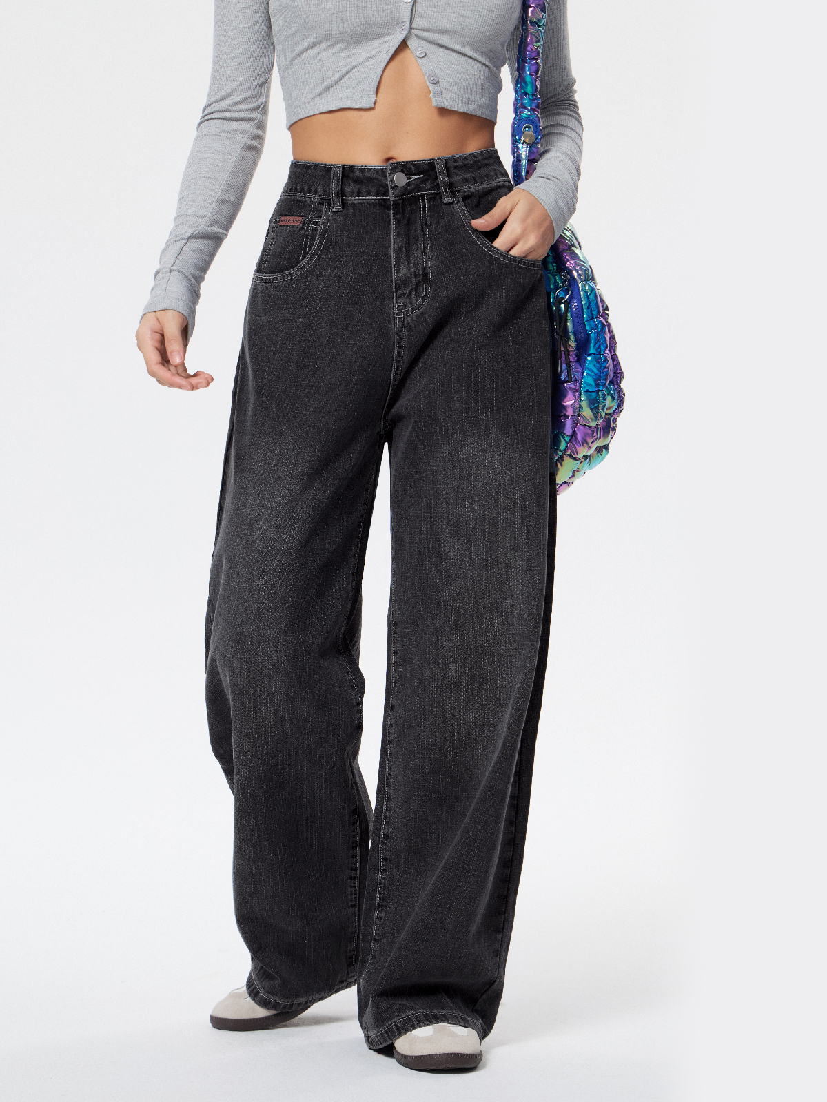 Contrast Color Side Double Zipper Boyfriend Jeans