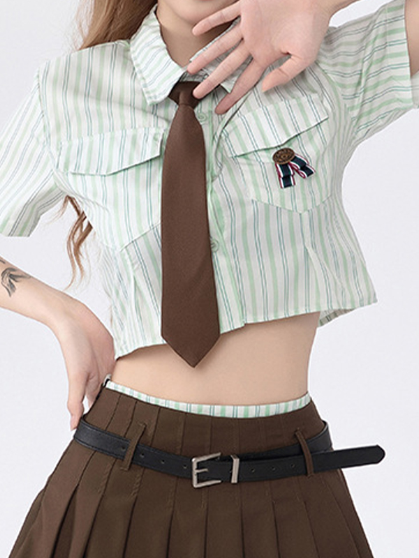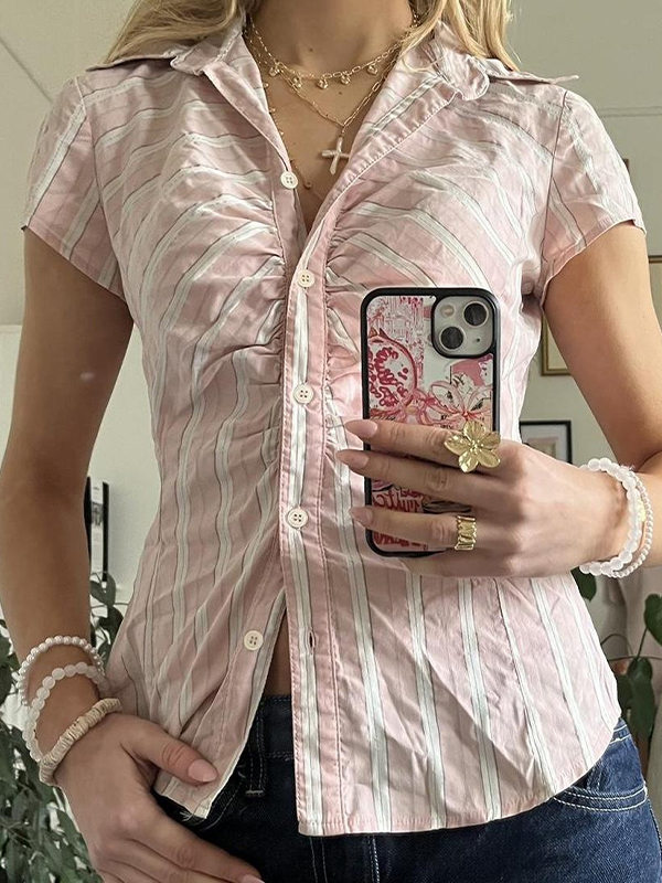 Blue And White Striped Slim Fit Short Sleeves Shirts
