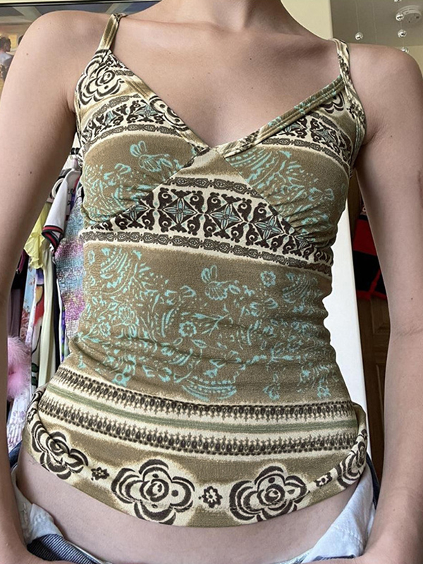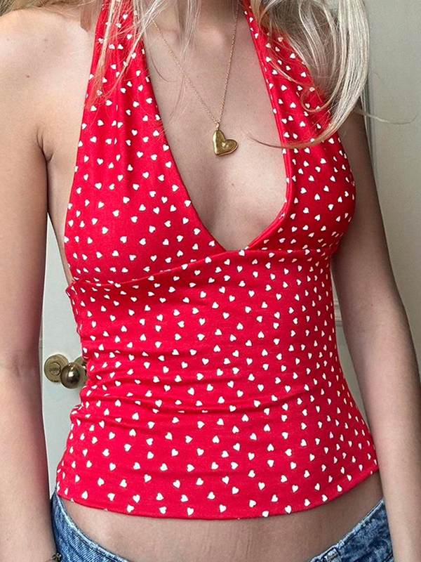 Y2K Printing Contrast Color Tie Up Cami Top