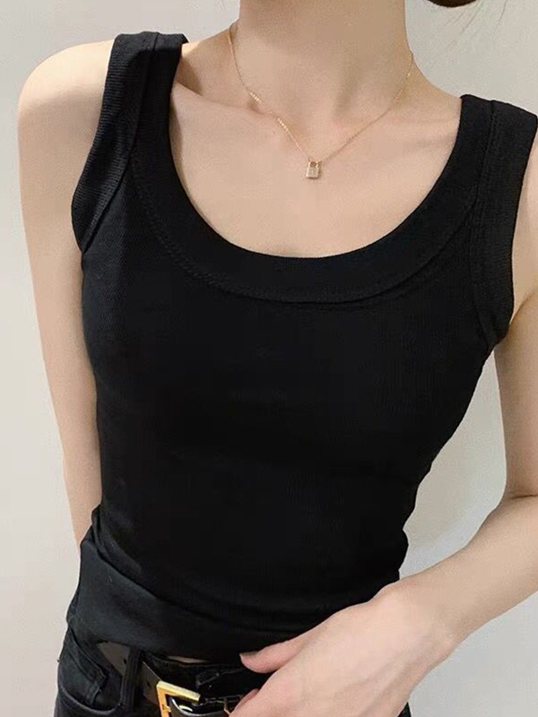 Solid Ribbed U Neck Tank Top