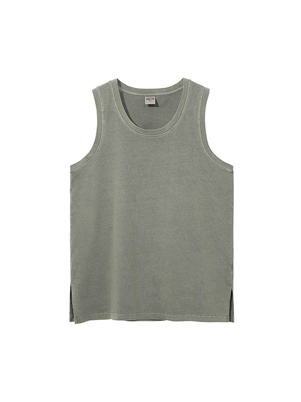 Washed Distressed Hem Slit Tank Top
