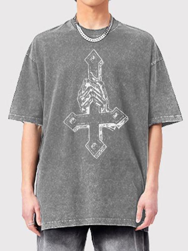 Men’s Cross Print Oversized Short Sleeve Tee
