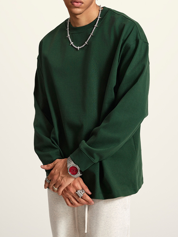 Men’ Solid Color Drop Shoulder Long Sleeve Tee