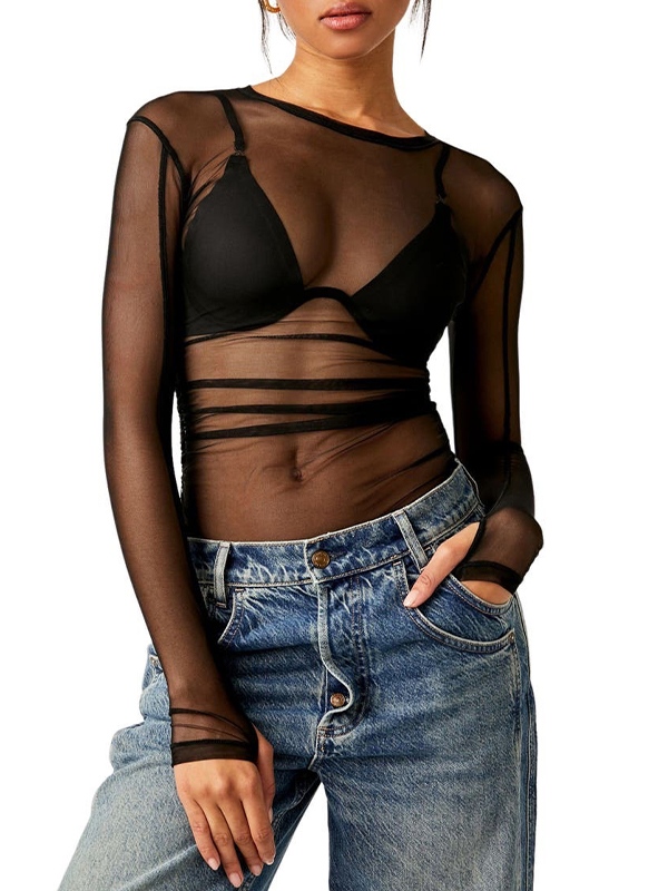 Transparent Mesh Long Sleeve Tee