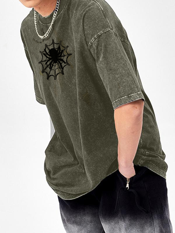 Men’S Spider Print Washed Oversized Short Sleeve Tee