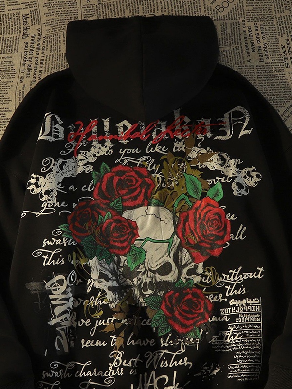 Men’s Gothic Rose Skull Print Oversized Hoodie