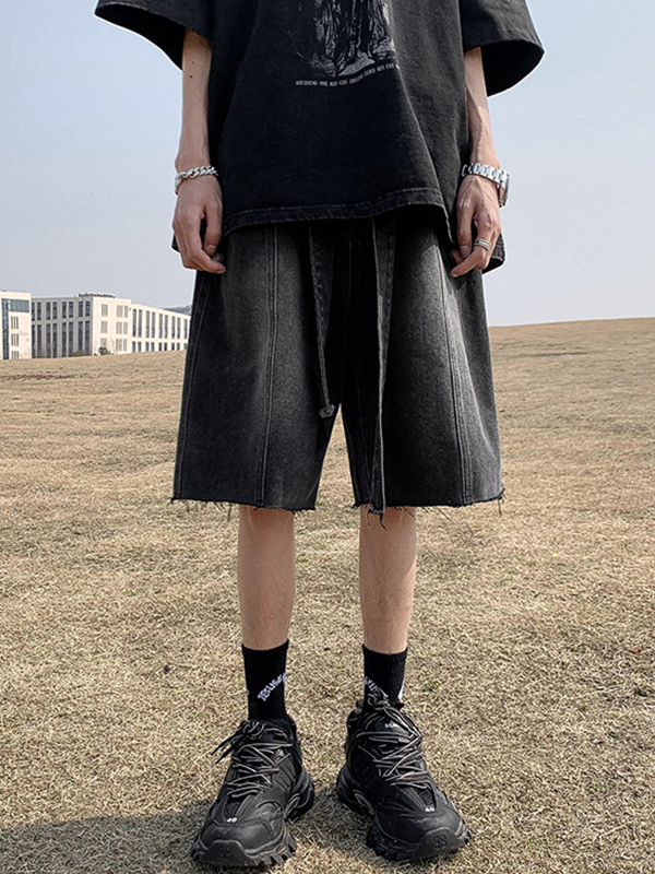 Men’s Wash Frayed Hem Tie Up Shorts