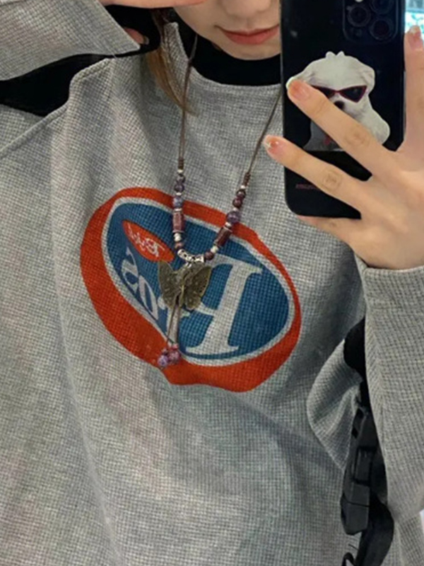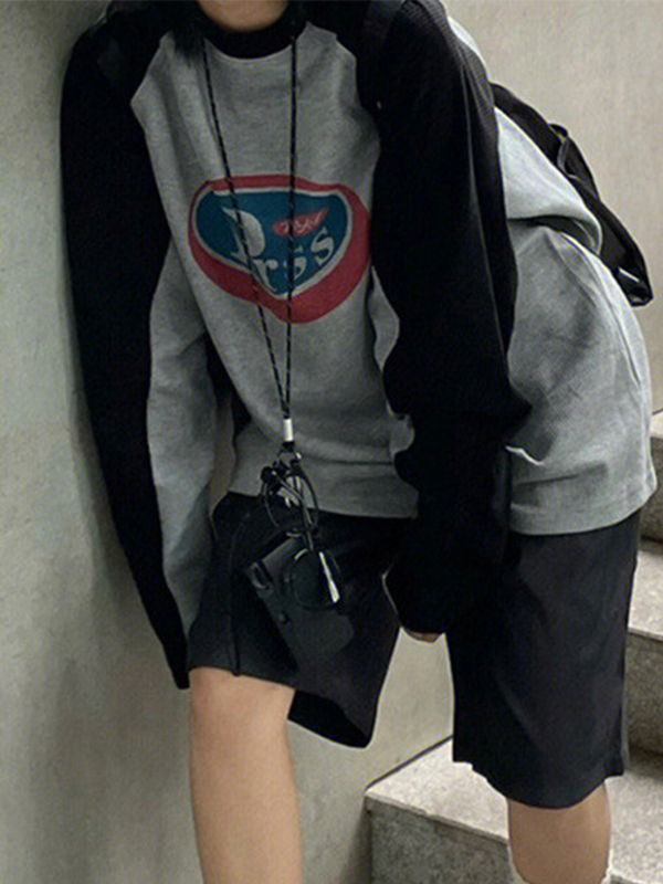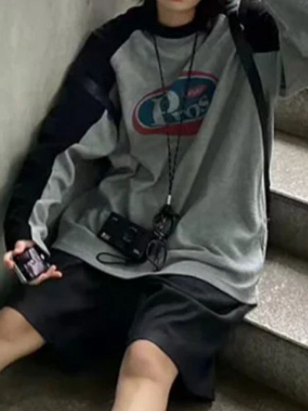 / American Retro Color Block Letters Sweatshirts